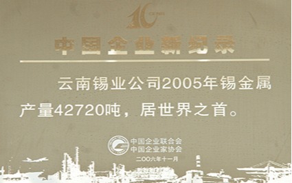 2005年,云錫錫產量達42720噸,躍居世界錫行業(yè)之首。